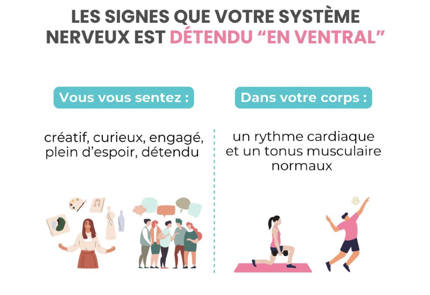 Dans le cas contraire, lorsque le corps perçoit la sécurité, il active la connexion et l’apaisement.